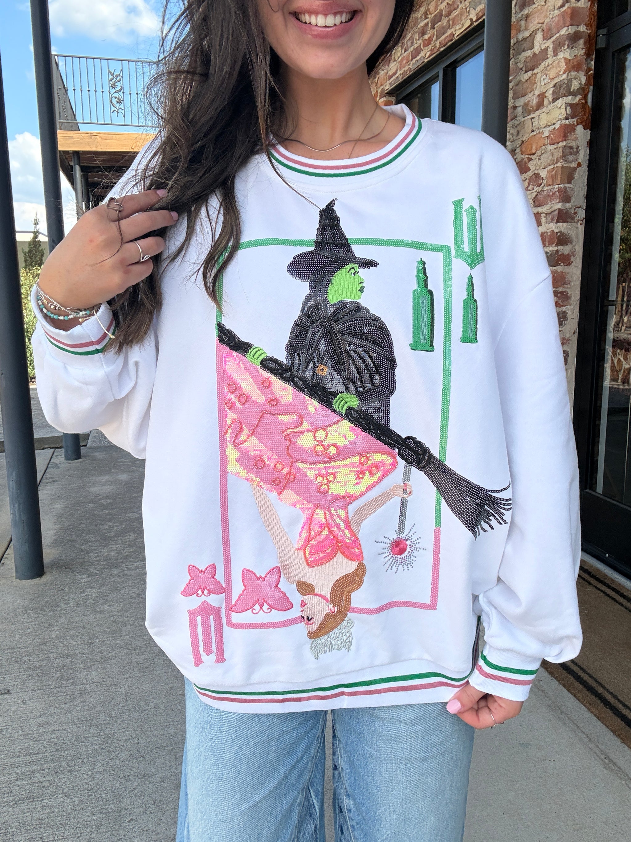 Celebrate your favorite witches with this playful Queen of Sparkles sweatshirt! Featuring dazzling sequins and glittering details inspired by Elphaba...