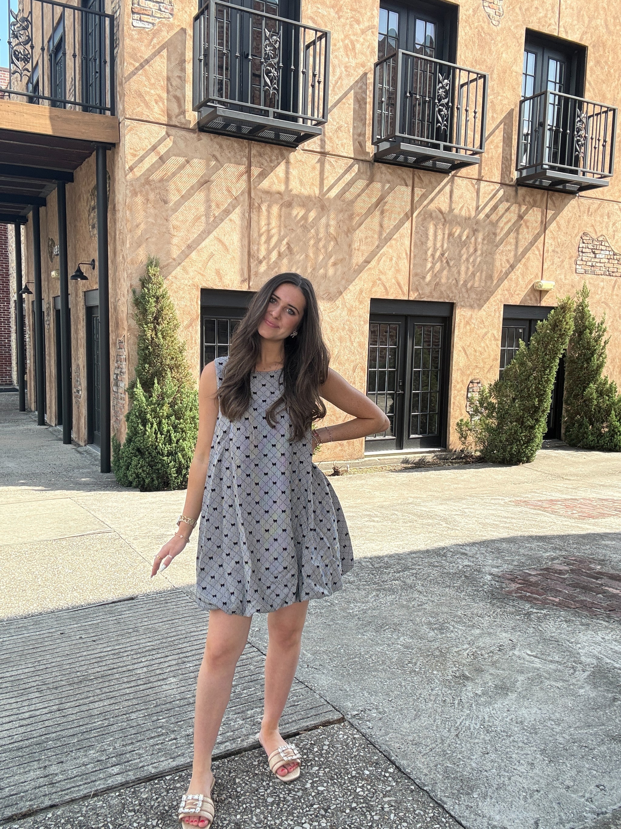 The Bow Pop Dress is a playful mini dress featuring a charming round neck and puffed silhouette. Adorned with soft...