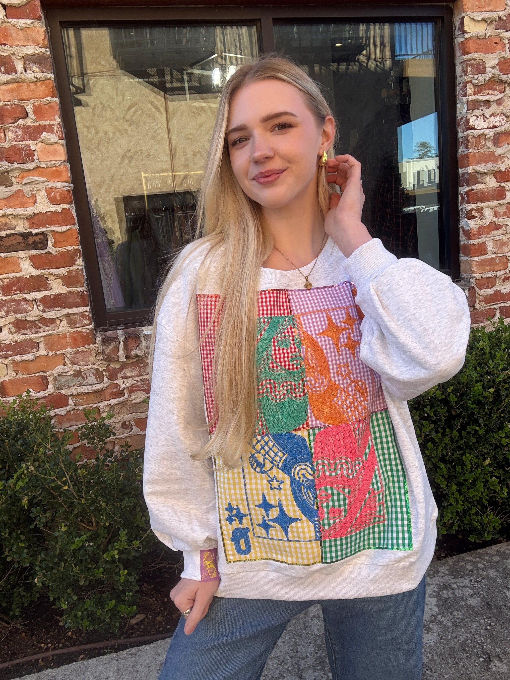 Shine bright in this Queen of Sparkles grey colorblock gingham sweatshirt, where playful style meets cozy comfort. Featuring the iconic...