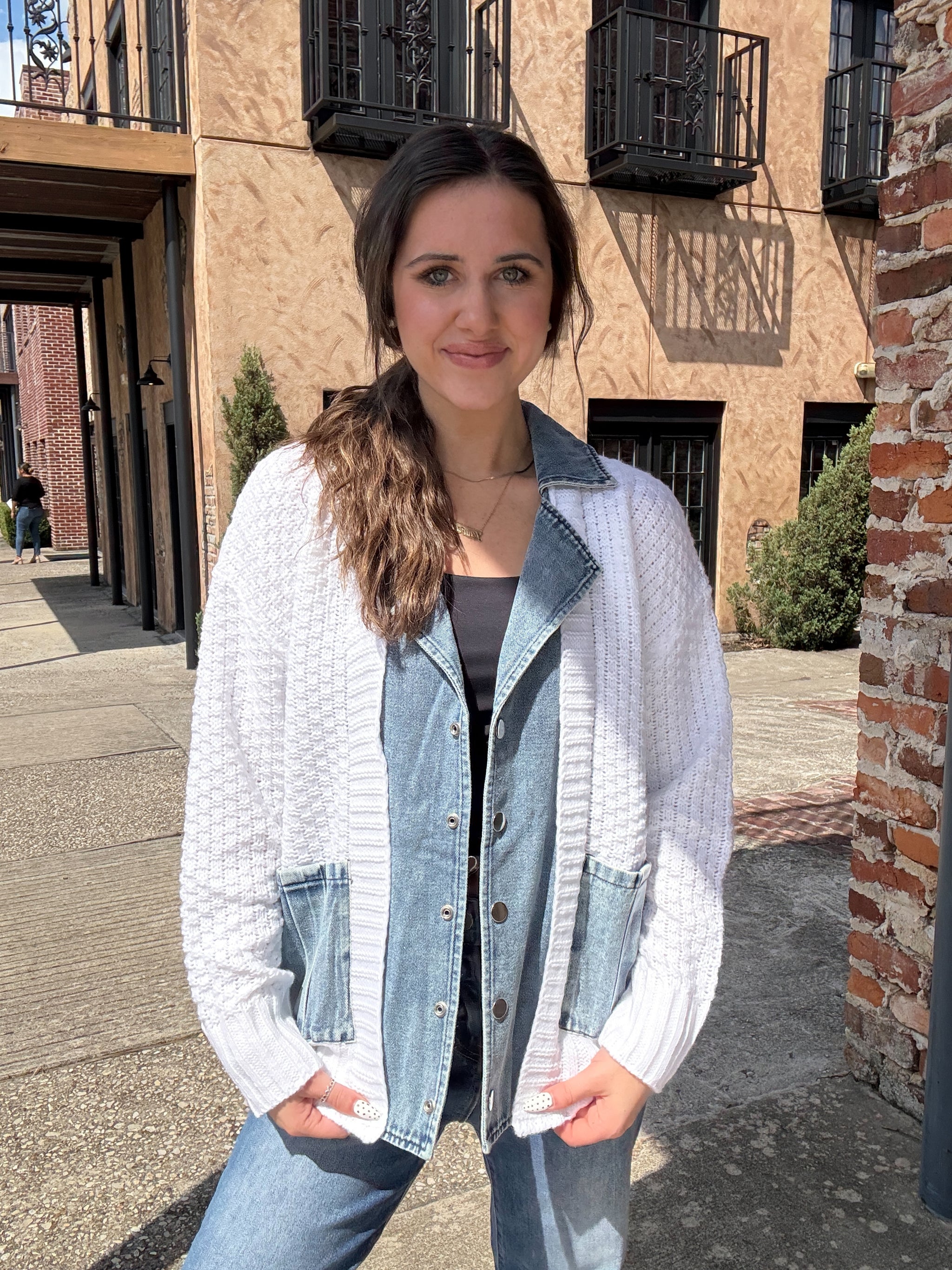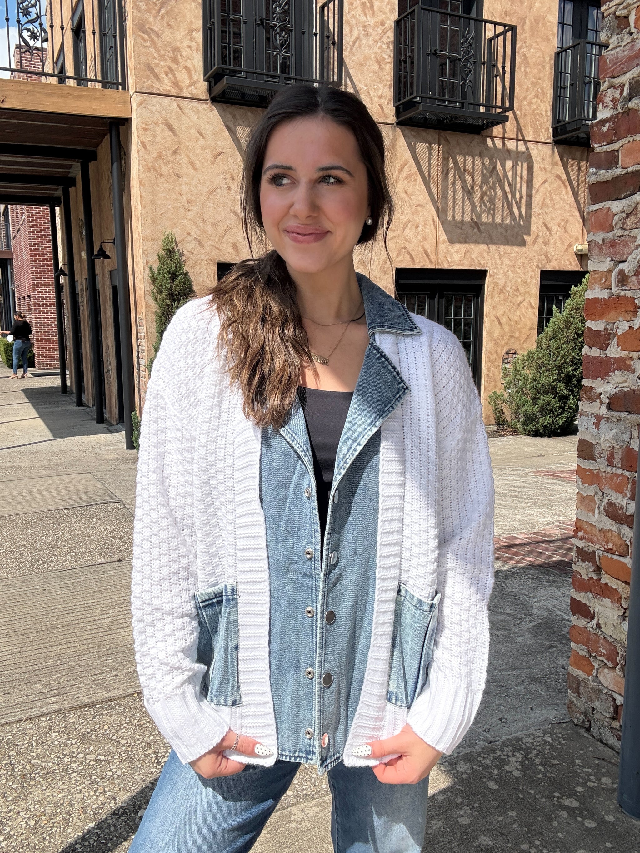 Add a pop of fun to your wardrobe with The Casual Contrast, a sweater cardigan that pairs cozy softness with stylish denim accents. Its playful mix of textures brings a fresh twist to your everyday look, keeping you comfy and cool whether you’re out and about or just lounging at home. Perfect for layering and making outfit magic happen!
