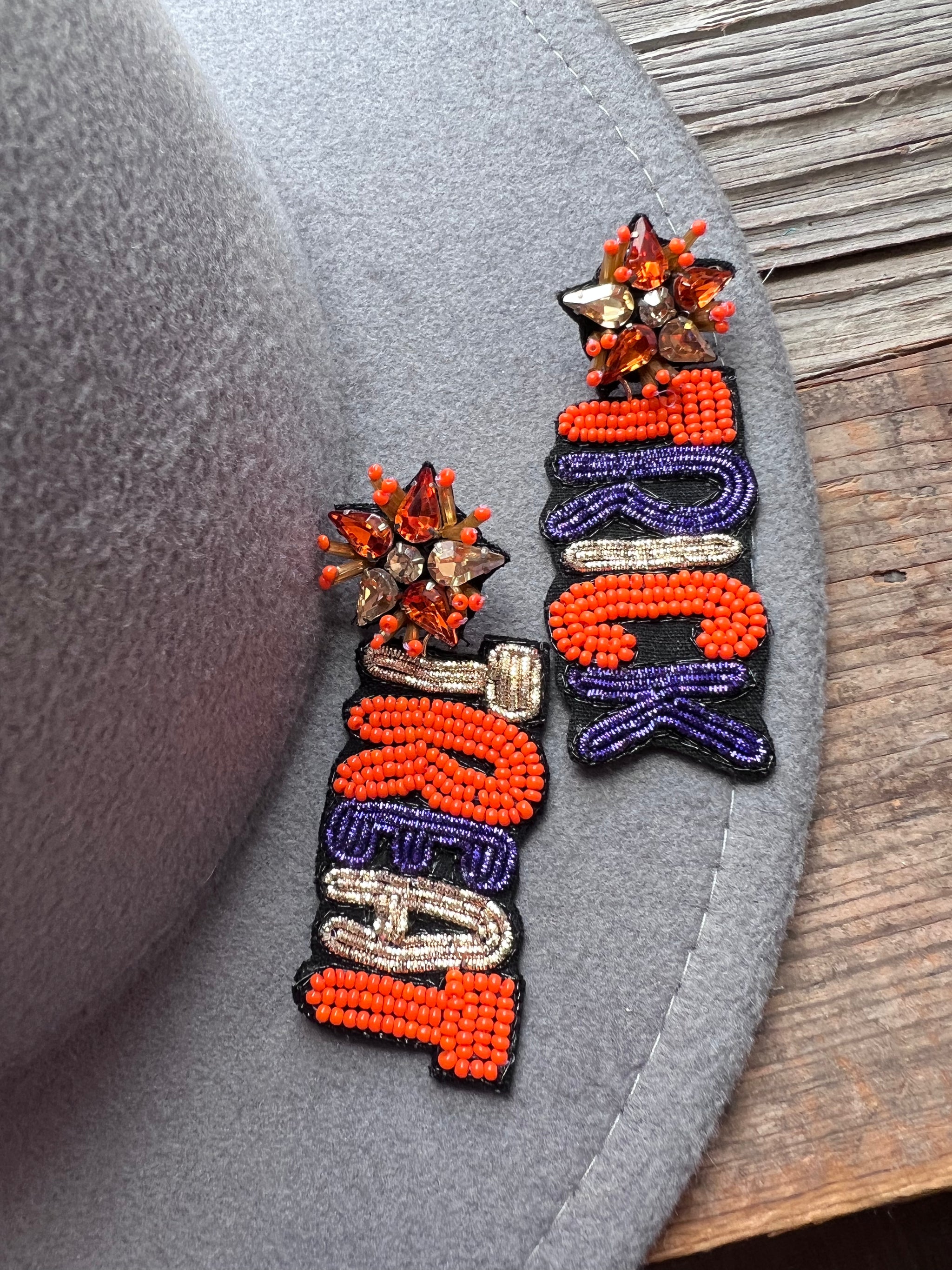 A fun earring that goes great with our custom hats!