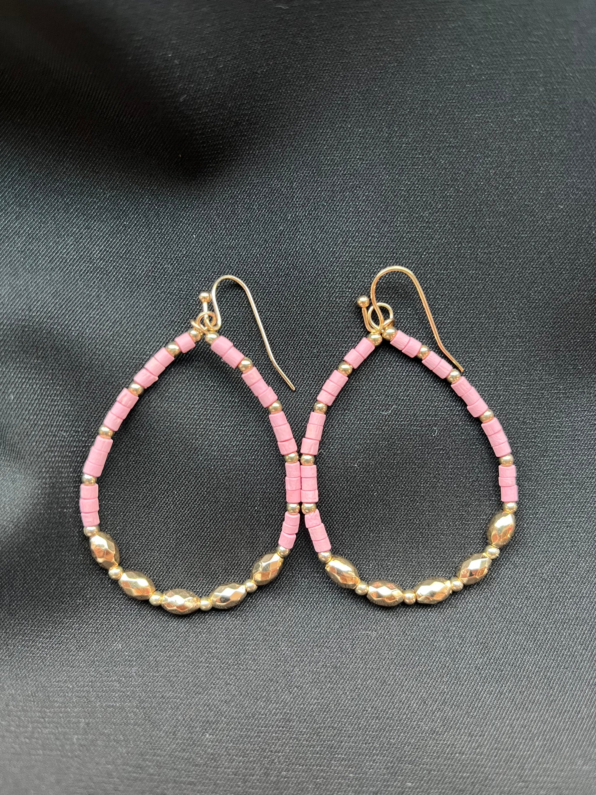 The Pink & Gold teardrop style earrings will be a great pair to so many outfits. 2"