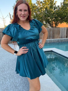 Shine like a star in our To The Moon Dress! This gorgeous teal shimmery dress features a baby doll style...