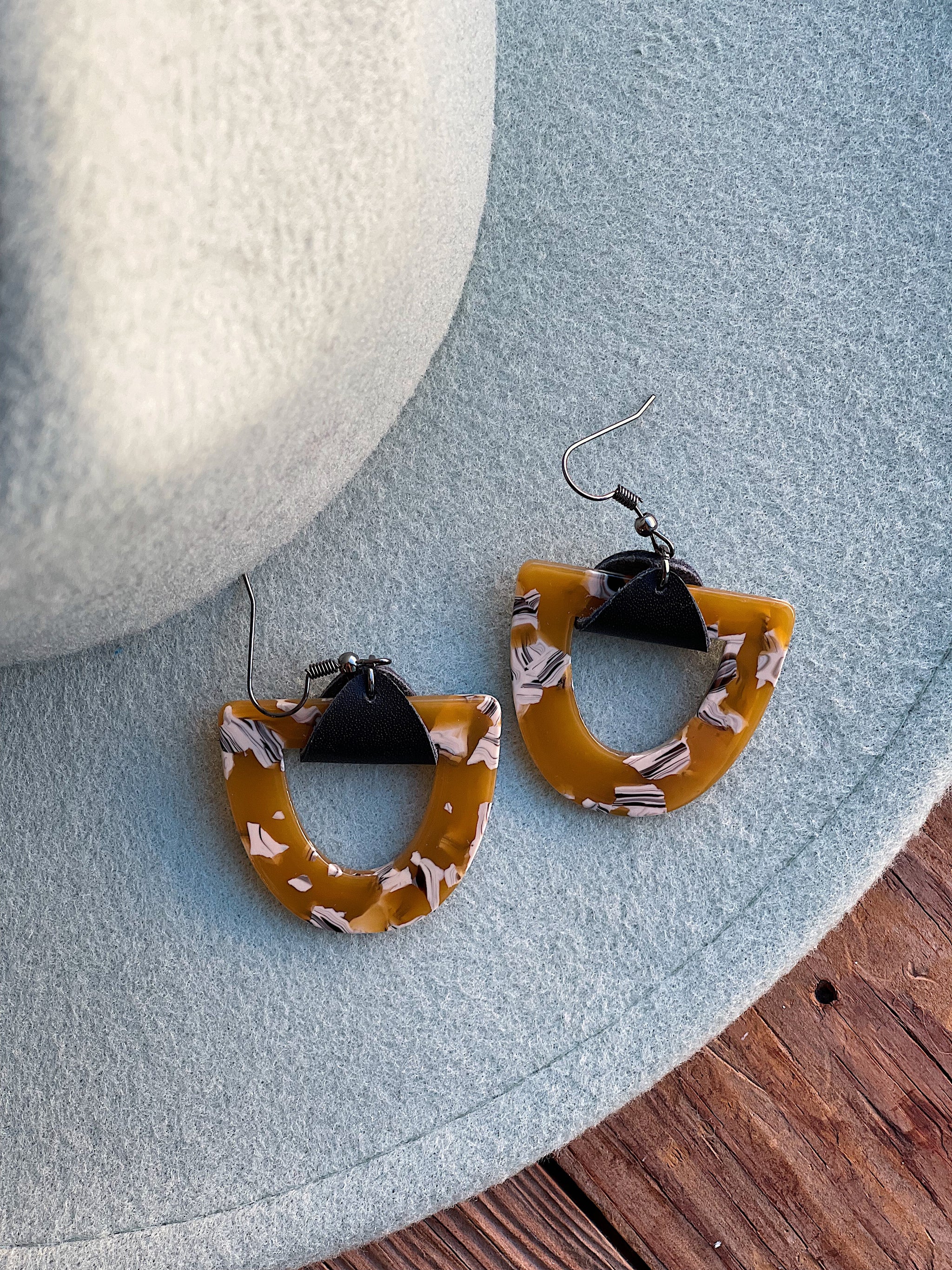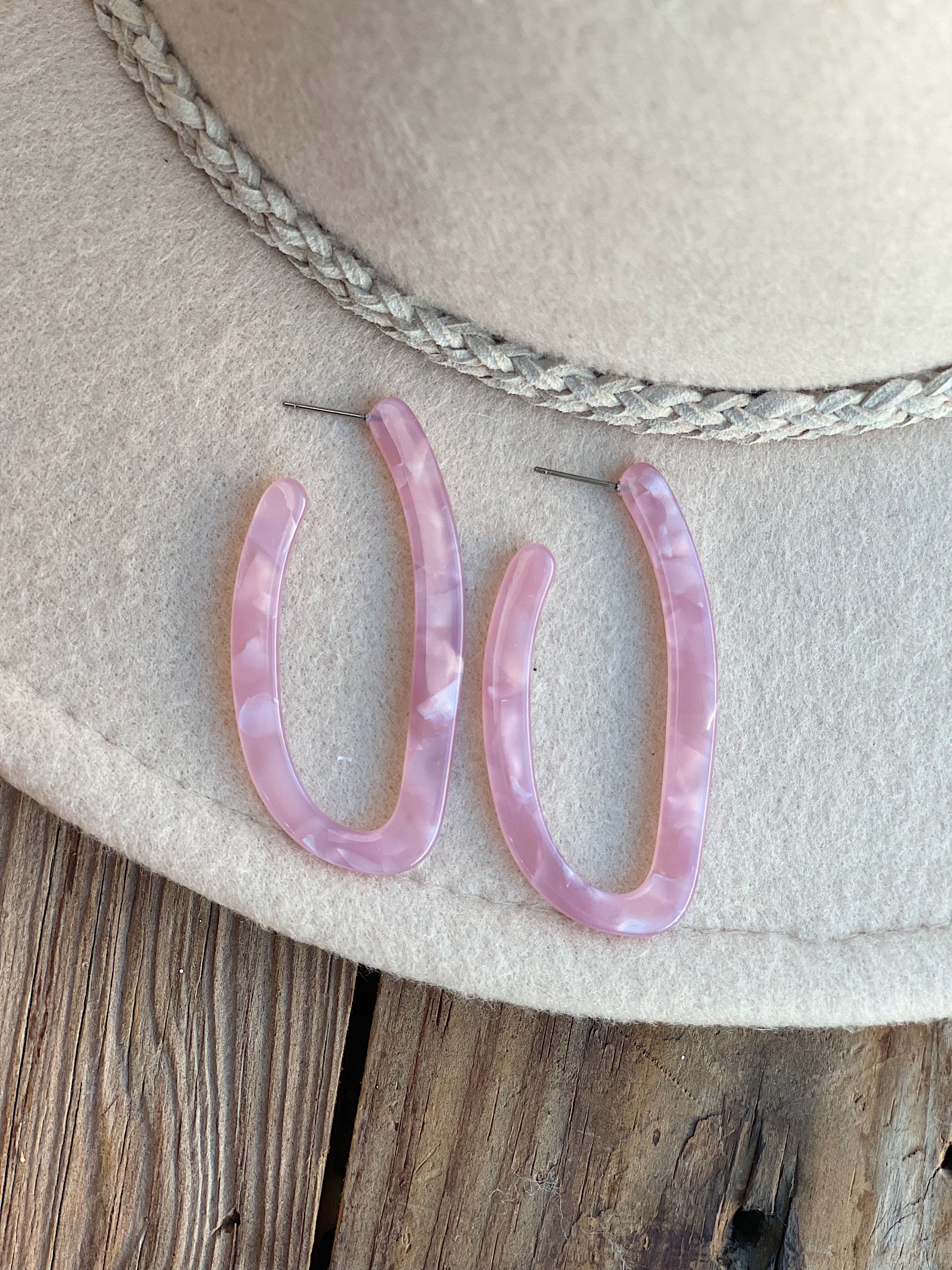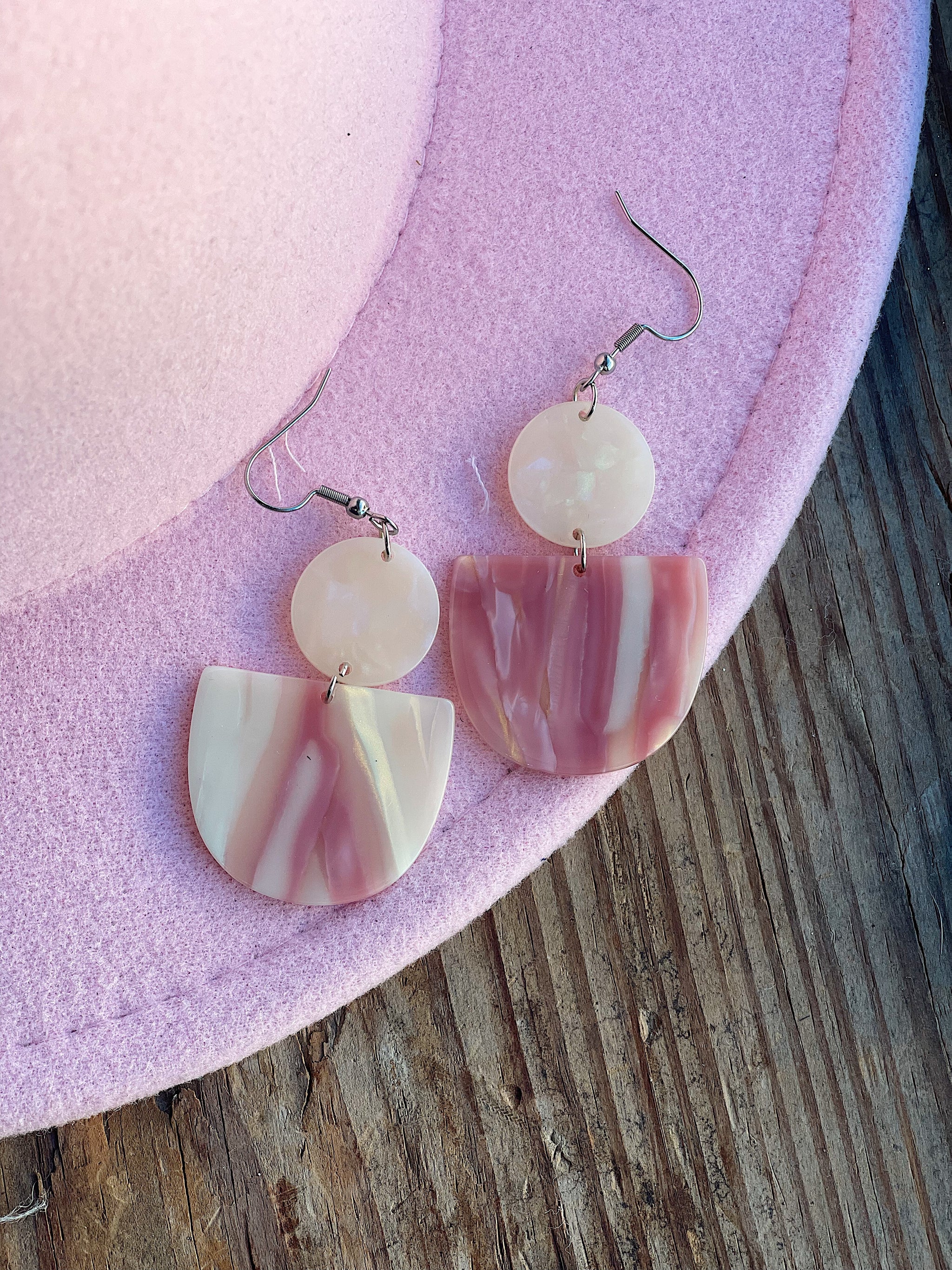 Beautiful turquoise and pink jelly style beaded earrings with gold trim accents.