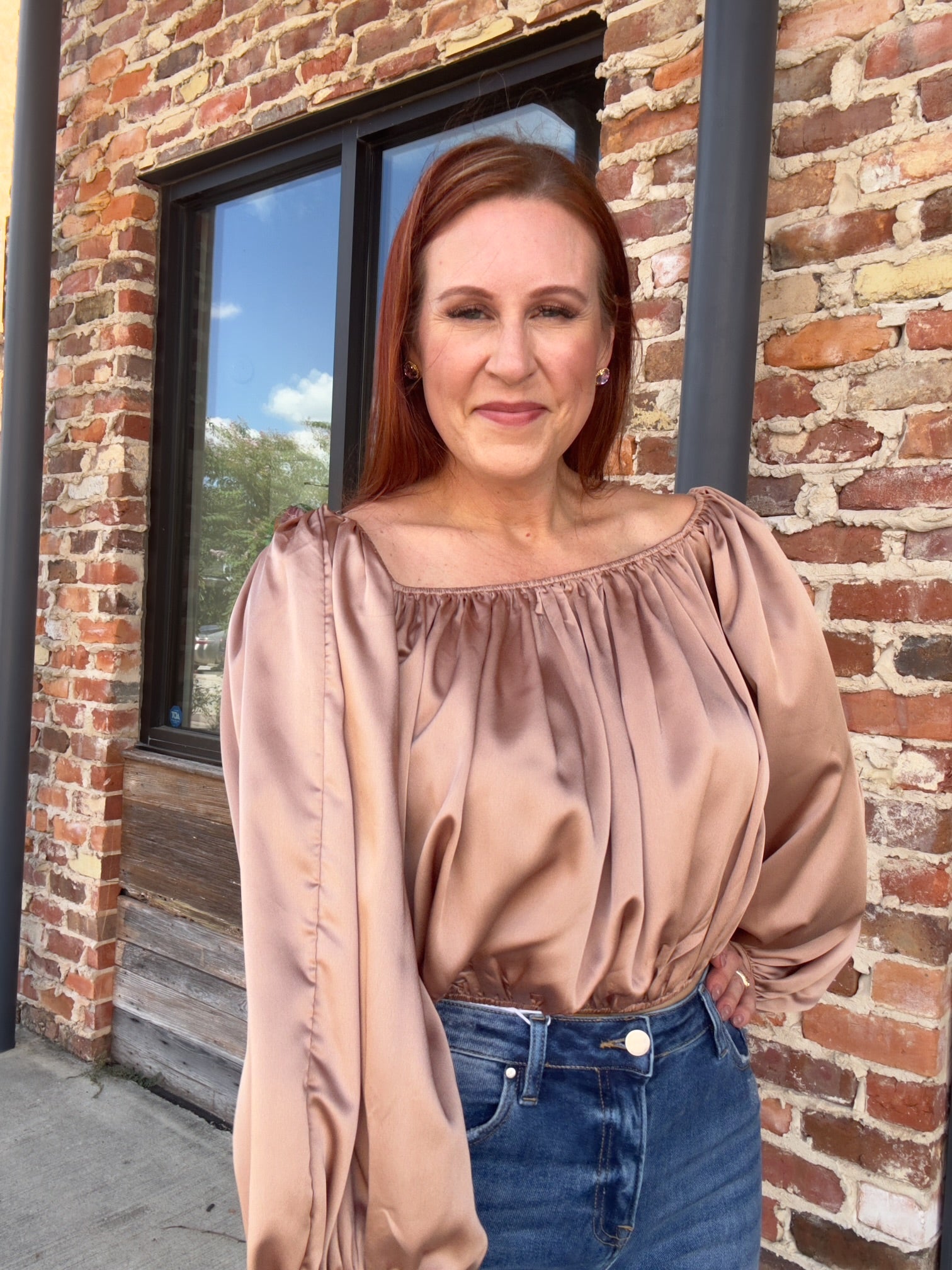 Its Introducing the Francesca Blouse - a black satin dream with a flowy fit, button detailing, and relaxed puff sleeves....