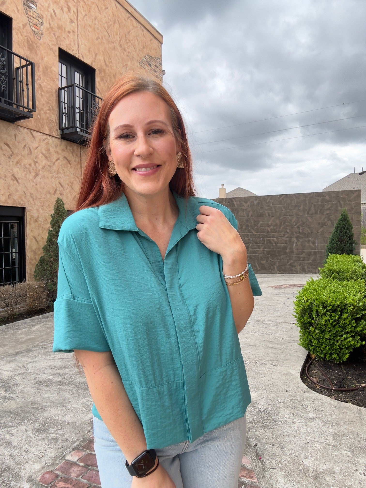 Effortlessly chic and versatile, our Turquoise Dreams Top is a must-have addition to your wardrobe. Designed with shorter cuffed sleeves...