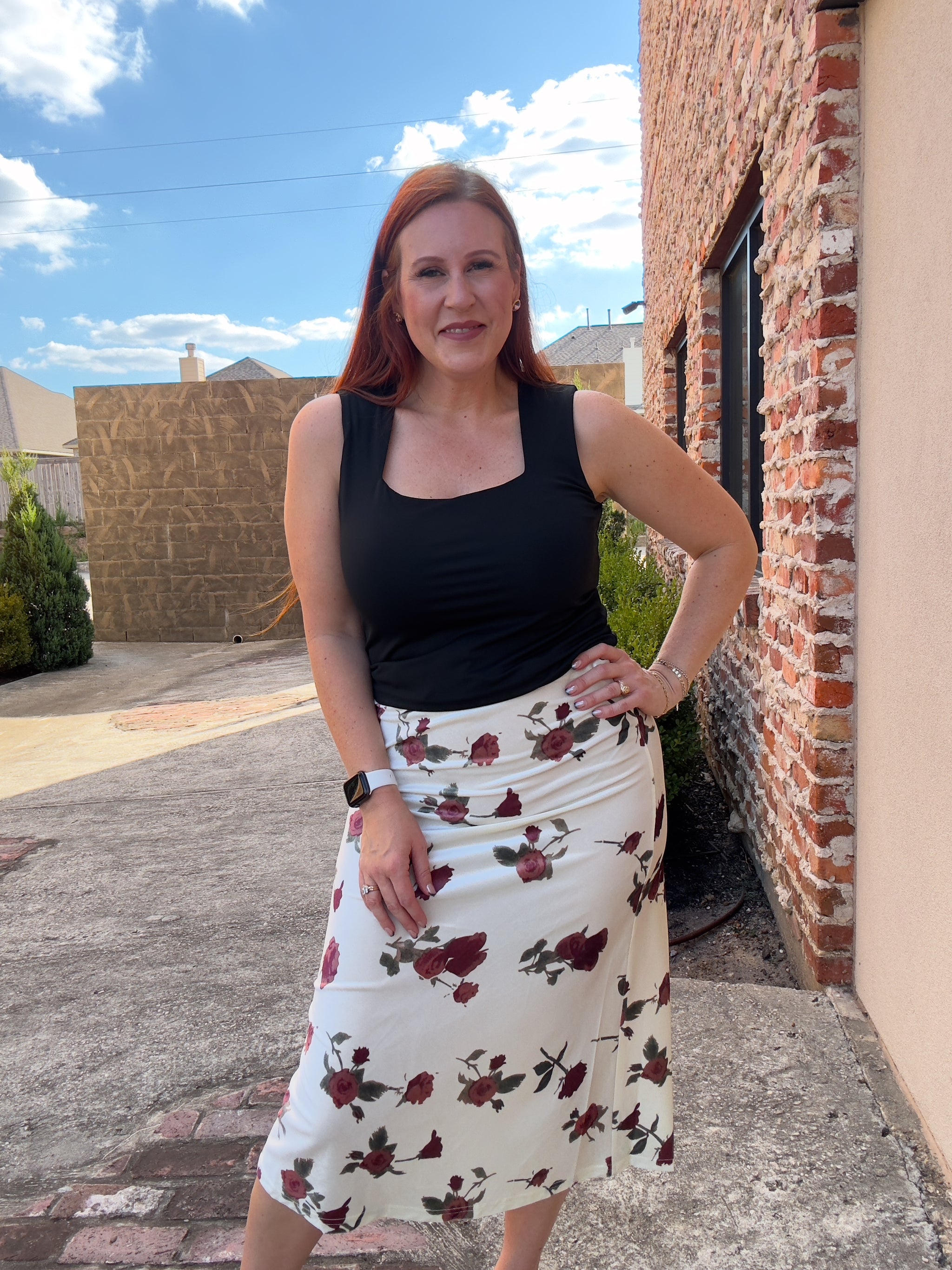Fall in love with our Crimson Sweetheart Top! Featuring a stunning crimson floral print and a flirty sweetheart neckline, this...
