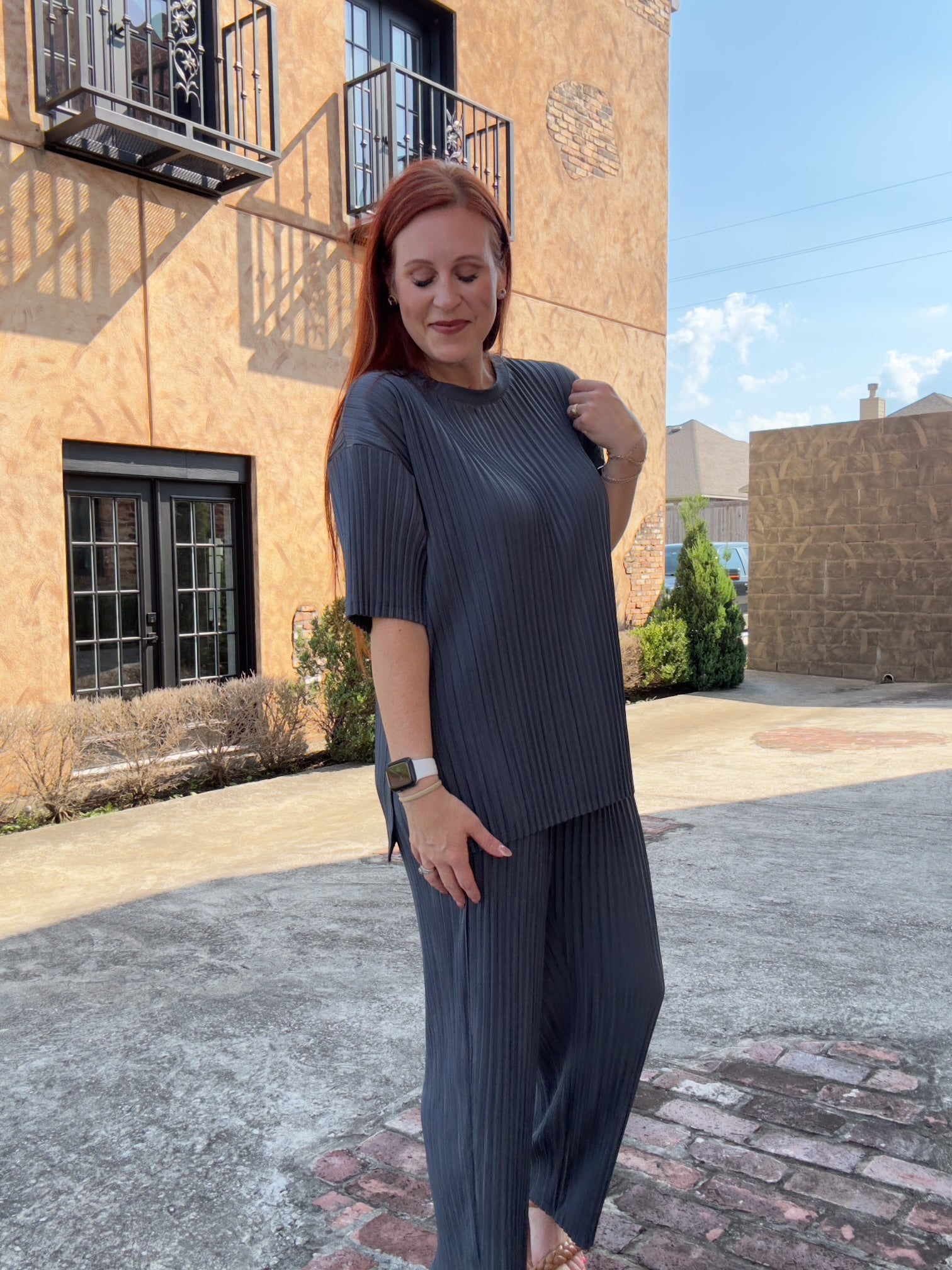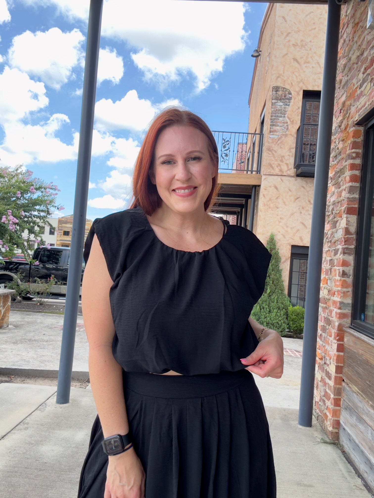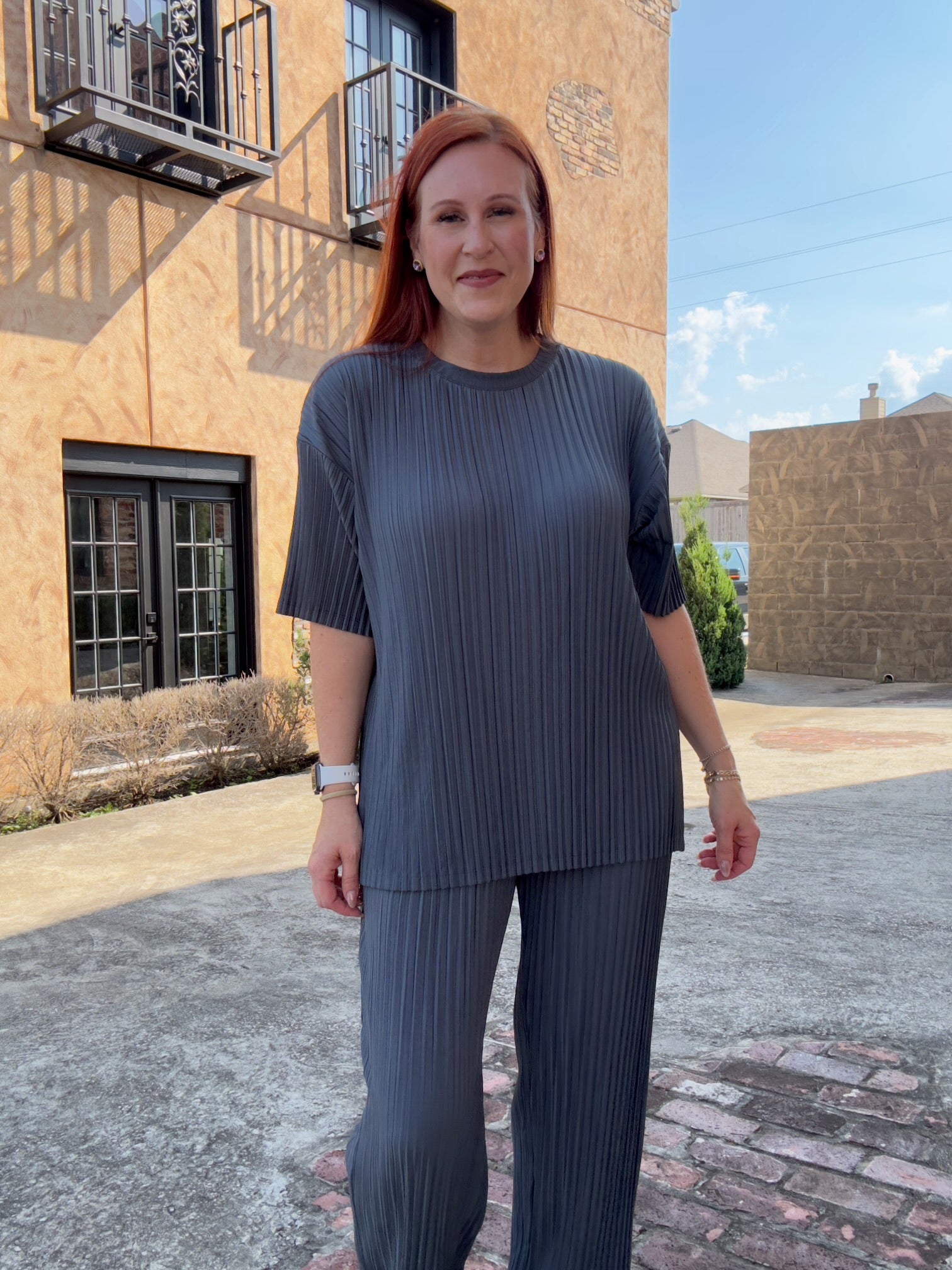 Introducing the Kendall Top - a pleated top with a loose fit and side slits. Perfect for both the office...
